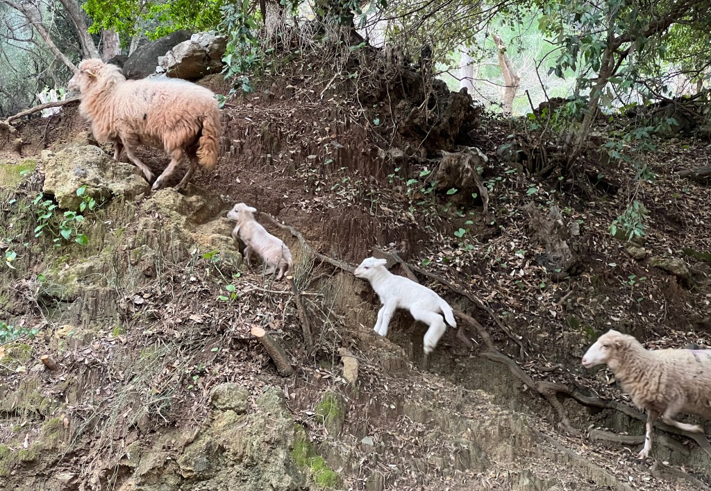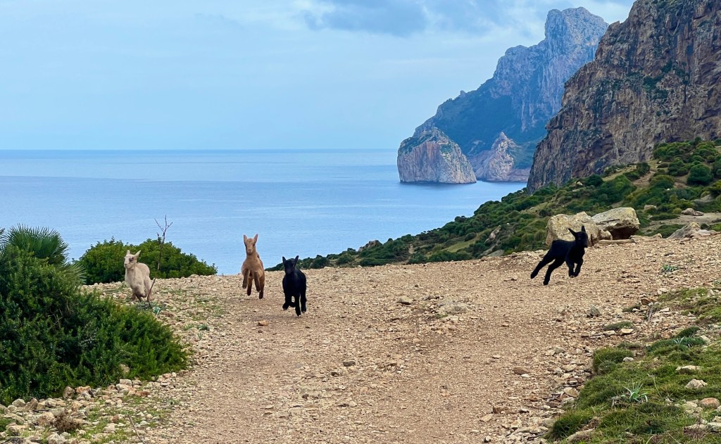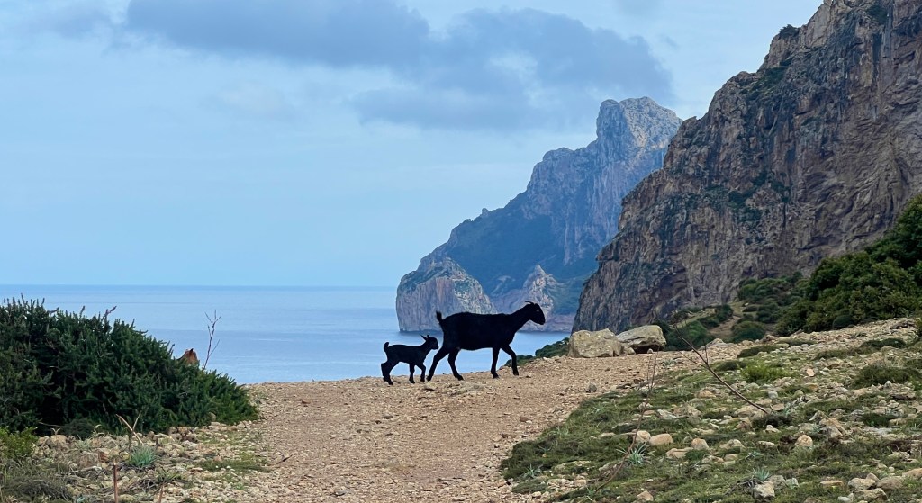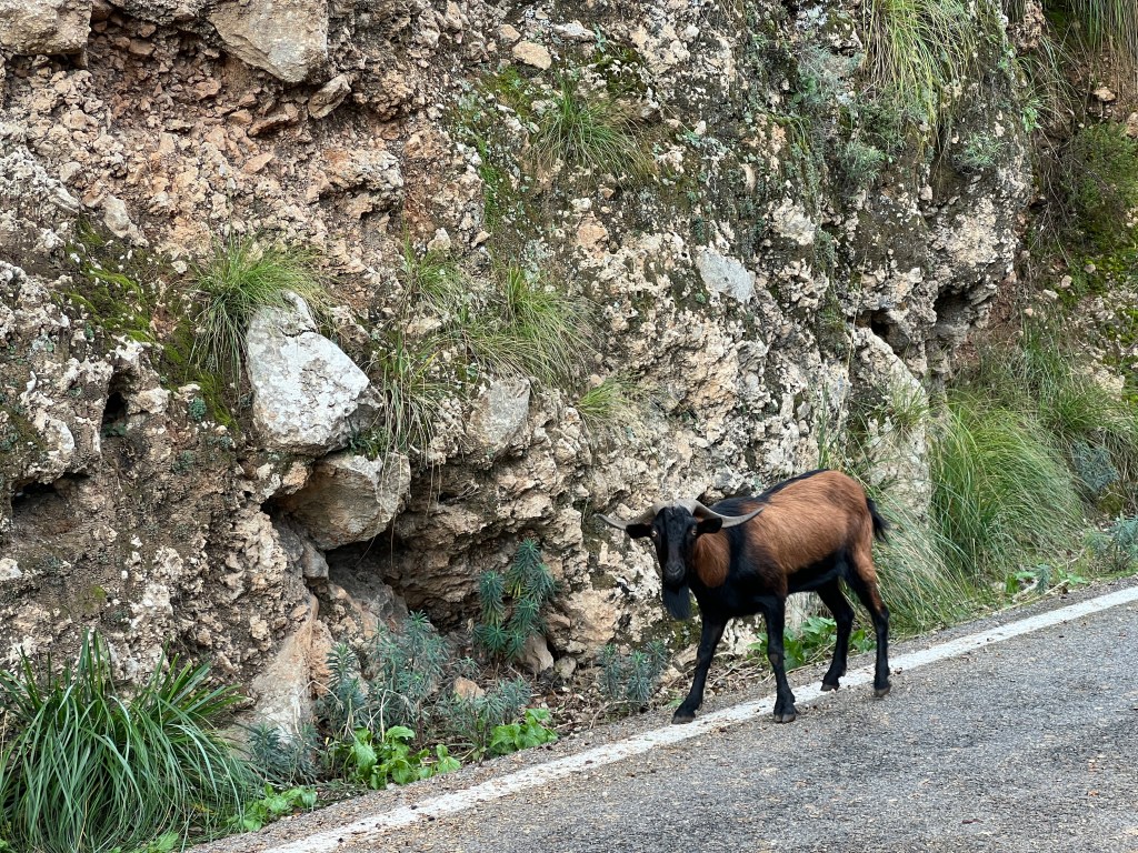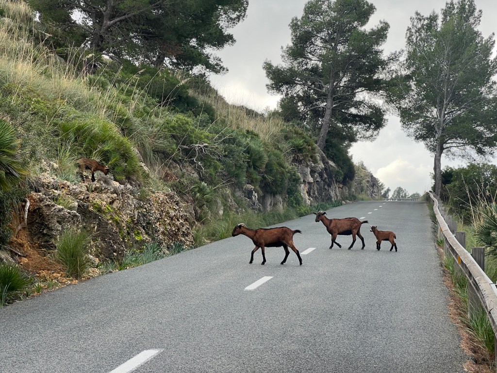 I wondered if I’d see goats, but I didn’t wonder for long. They are everywhere on Mallorca. This handsome family crossed in front of me 10 minutes into the ride.