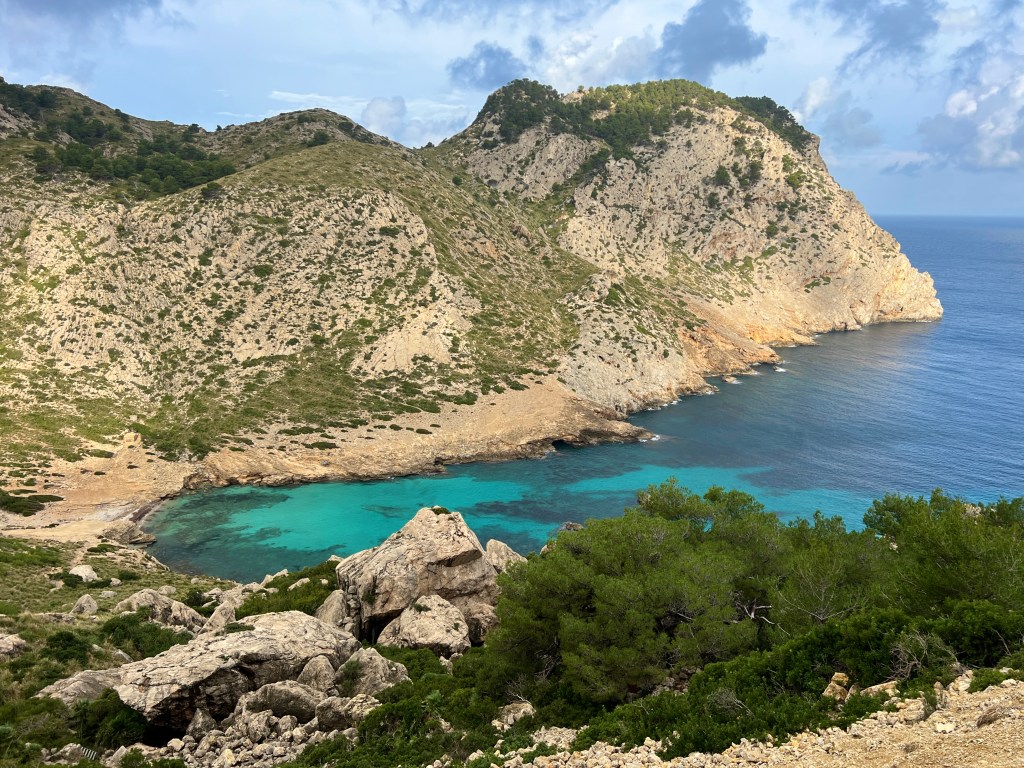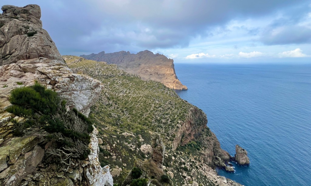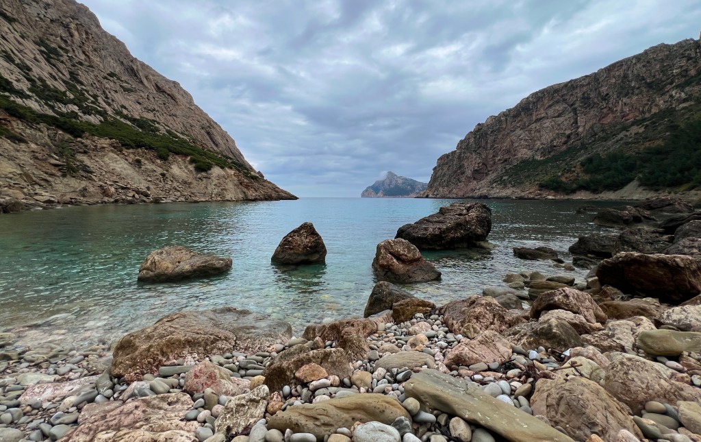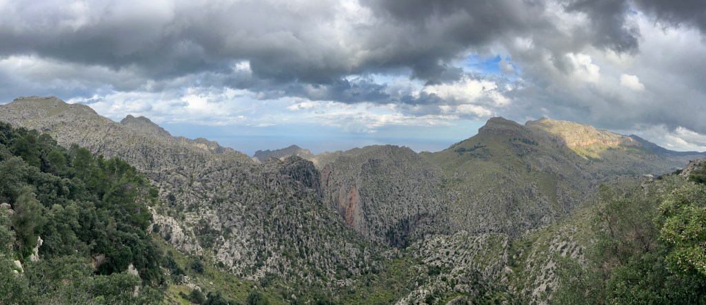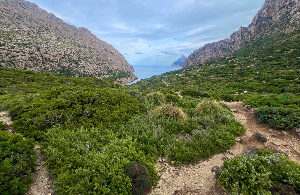 After riding around for much of the week I returned the bike on Thursday evening, opting for a hike on Friday, my last full day on Mallorca. I found a trailhead that I could walk to, leading out of Port Pollença and up through a canyon to Cala Bóquer, a cove on the north coast. The forecast was calling for rain, but I was hoping my luck would hold out a little longer.
