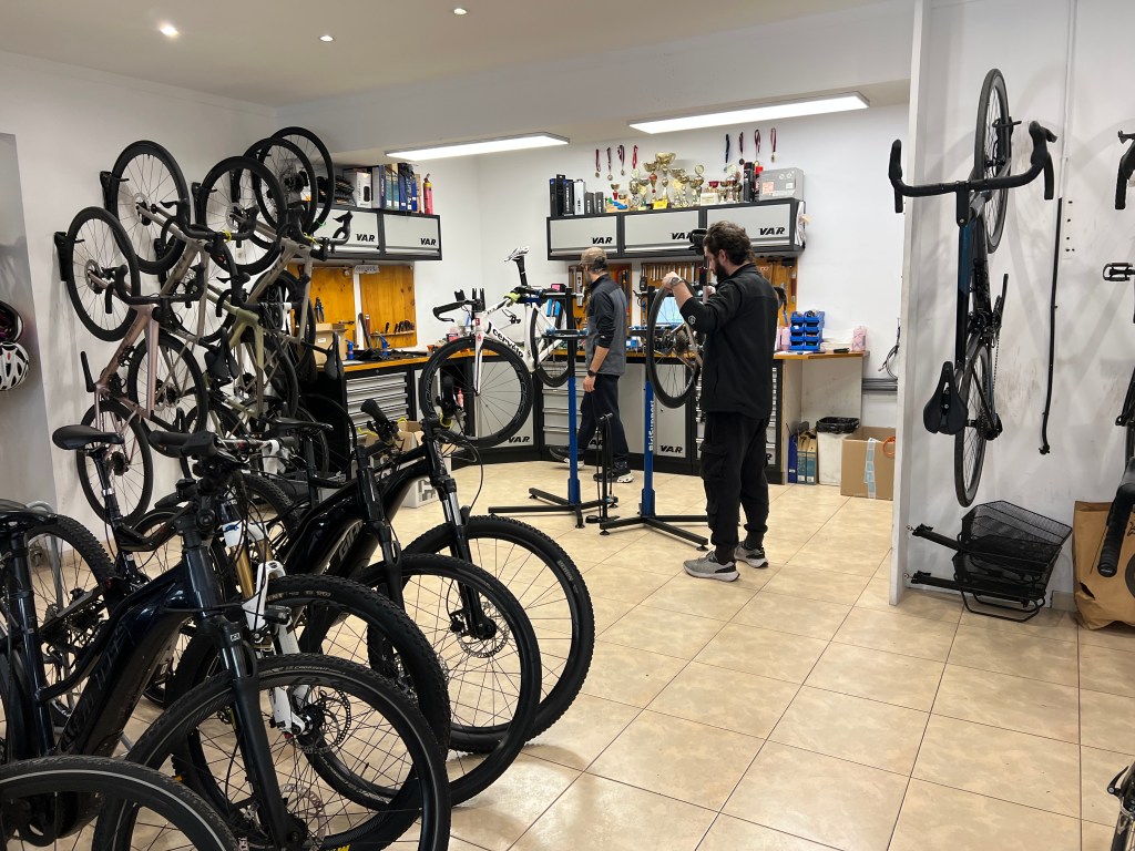 The nice guys at Bike Island Mallorca, tweaking my ride. Thank you gentlemen. You saved my vacation.